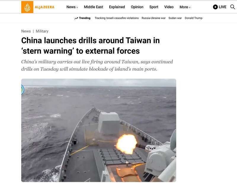 美国有线电视新闻网(CNN)报道称,从解放军公布的演习内容来看,此次重点并非传统登陆作战,而是测试“系统性封锁能力”,包括对台湾港口、航道与空域的控制,目标在于切断外国军力进入台海的可能性。CNN报道称,解放军此次对台演习,是对任何推动“台独”行为发出的“严重警告”。
